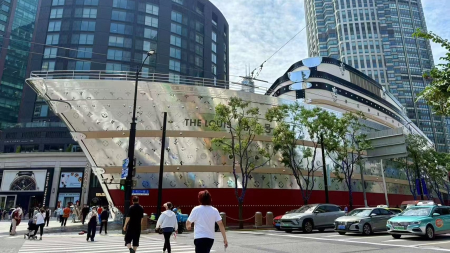 活动首站,嘉宾们走进位于南京西路商圈兴业太古汇的“路易号”——路易威登全球规模最大、造型独特的巨轮主题快闪展览。这座融合艺术创意与时尚基因的地标装置,不仅是品牌全球战略的重要落子,更是静安高效链接国际资源、打造高端消费生态的生动缩影。